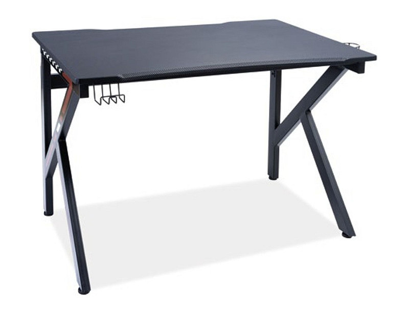 blat MDF+oleina PU, stelaż metal,kolor czarny, uchwyt na słuchawki, uchwyt na kubek.