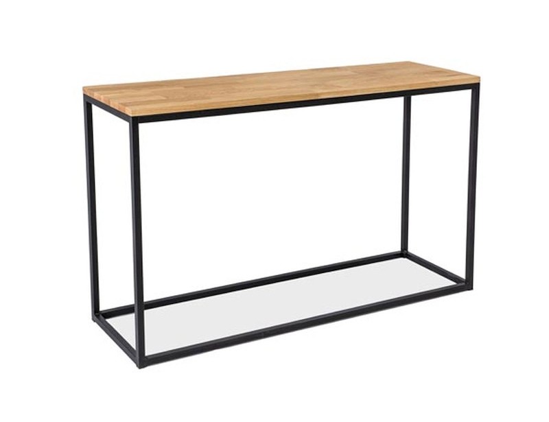 Konsola, blat: okleina naturalna, kolor:dąb, stelaż: metal, kolor: czarny.