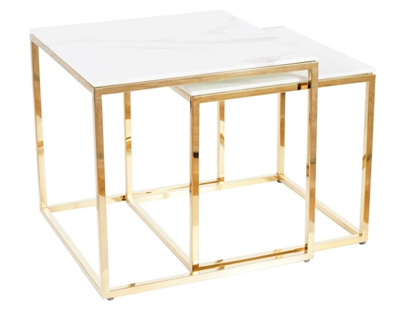 set, top: tempered glass, frame: stainless steel, color: white, marble effect / golden