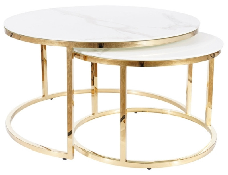 set, top: tempered glass, frame: stainless steel, color: white, marble effect / golden
