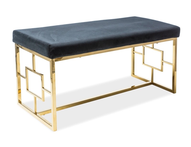 Ławka, tkanina aksamit, kolor: czarny, tap. 105 / metal, kolor: złoty.