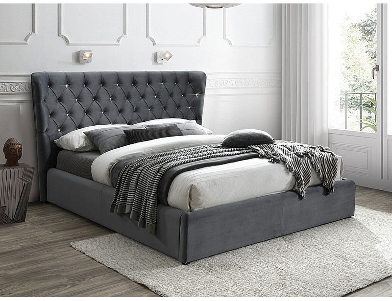 Łóżko, tkanina aksamit, kolor: szary, tap. Bluvel 14