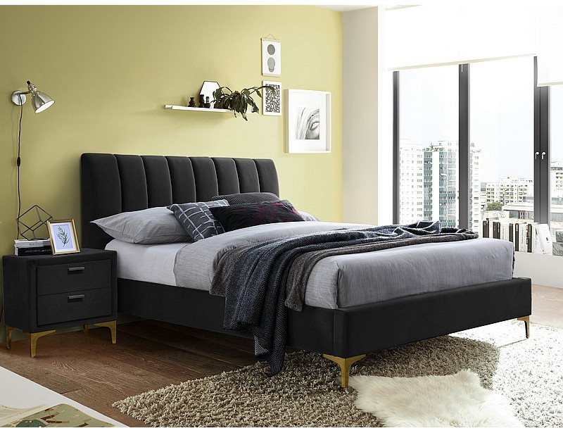 Łóżko, tkanina aksamit.