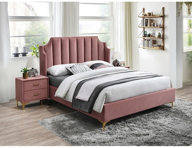 Łóżko zawiera w komplecie stelaż z listew giętych osadzonych w elastycznych uchwytach.