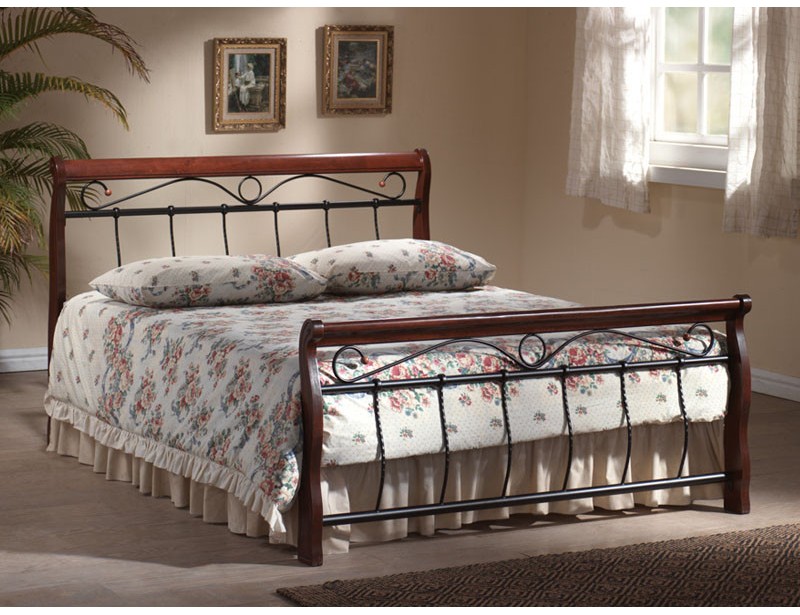 Łóżko, materiał: drewno, kolor: czereśnia antyczna / metal, kolor: czarny.