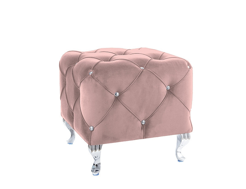 puf kwadrat, tkanina aksamit: róż antyczny BLUVEL 52 / nogi: metal, kolor: srebrny