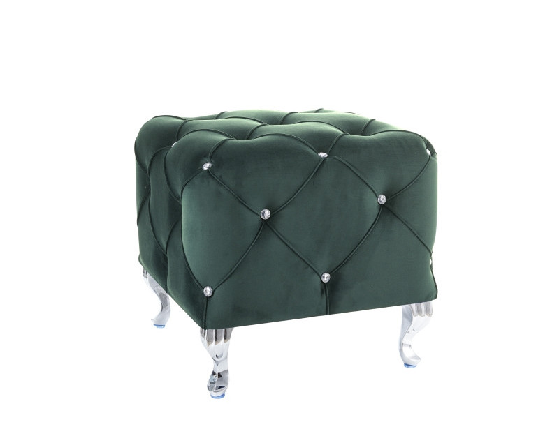 pouf, velvet fabric: green BLUVEL 78 / legs: metal, color: silver