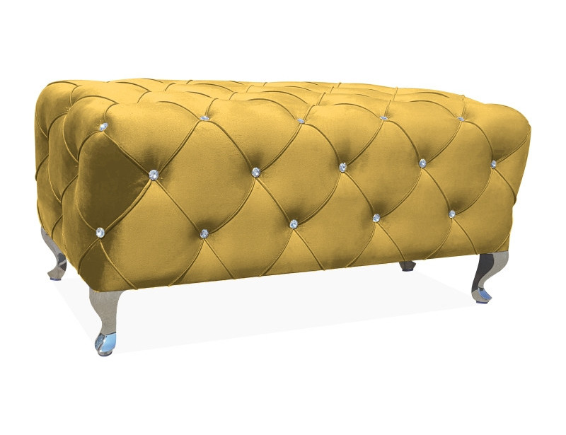 pouf/bench, quilted with crystals, velvet fabric: curry BLUVEL 68 / legs: metal, color: silver