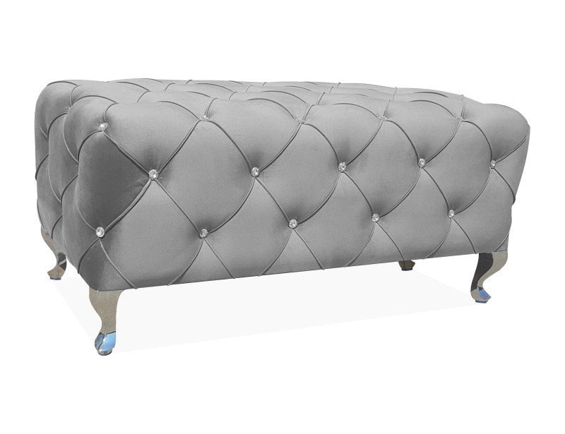 pouf/bench, quilted with crystals, velvet fabric: grey BLUVEL 14 / legs: metal, color: silver