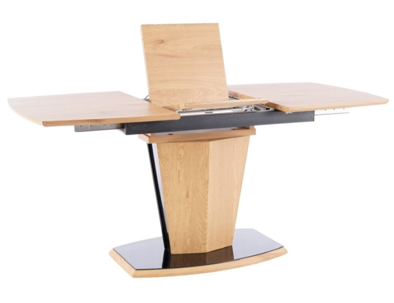 blat: MDF+okleina, stelaż MDF+okleina+szkło hartowane, kolor: dąb / dąb+czarny lakier
