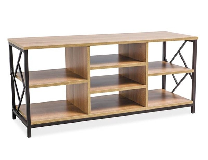 Szafka TV, MDF, kolor: dąb, stelaż: metal, kolor: ciemny brąz.