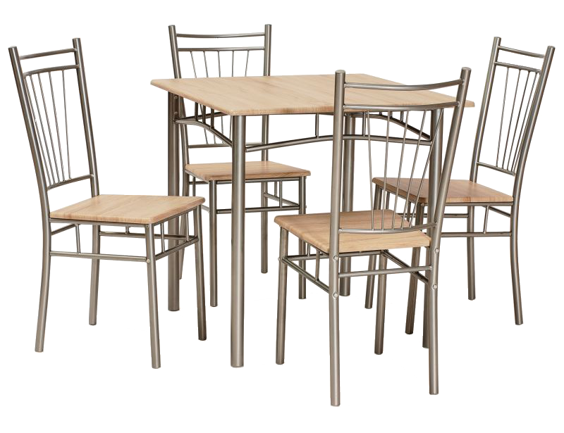 Zestaw stołowy - stół, blat: MDF, kolor: dąb sonoma / stelaż metal, kolor: aluminium